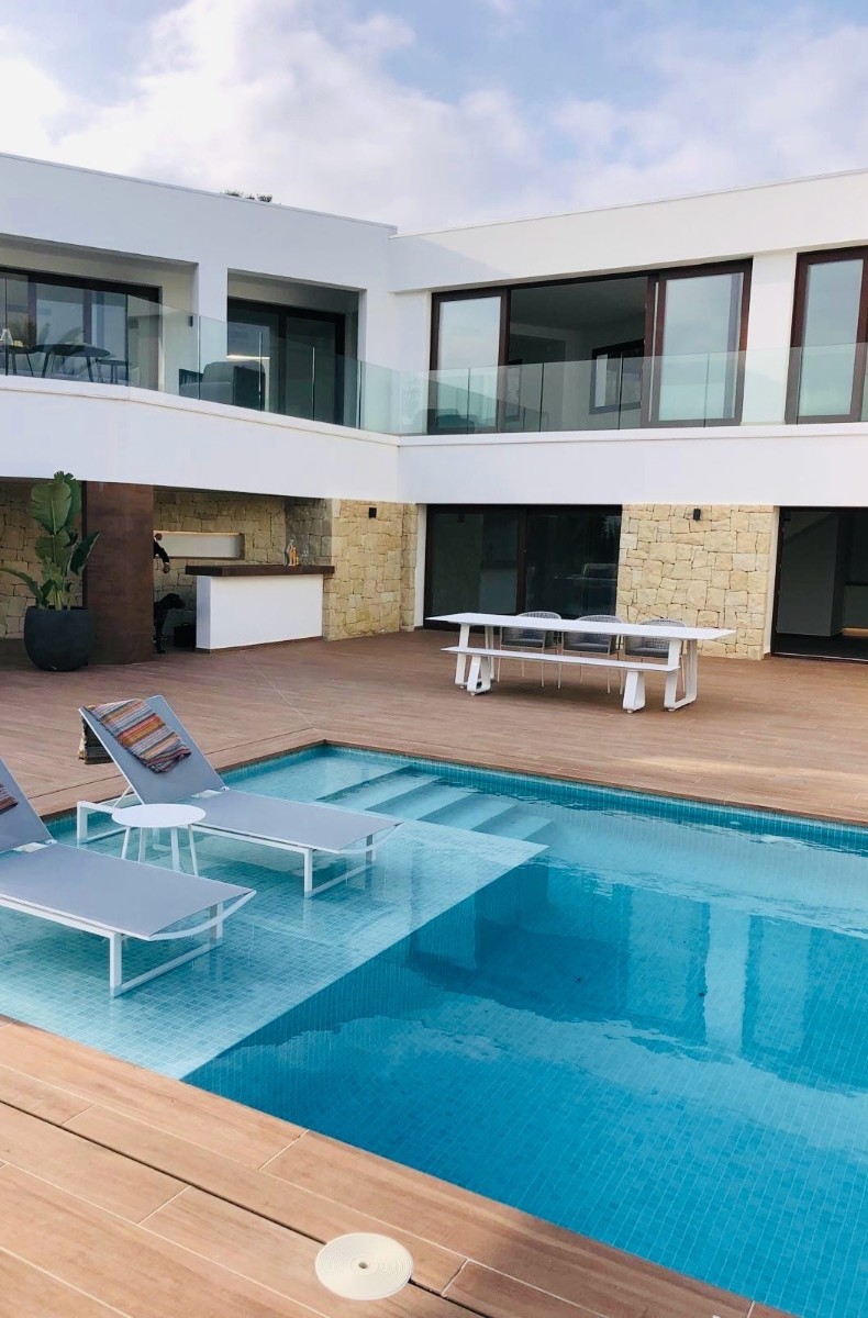De villa is voorzien van vloerverwarming op beide niveaus, elektrische rolluiken, centrale airconditioning, binnen- en buitenverlichting. De hoogste kwaliteit materialen zijn gebruikt en het ontwerp is van een gerenommeerde architect om een bijzondere moderne villa te creƫren met een uitstekend wooncomfort.