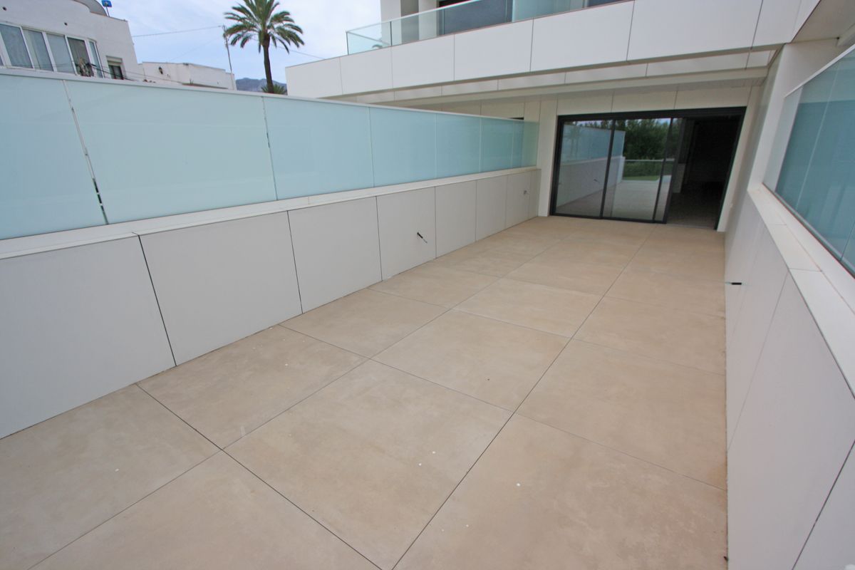 Luxury new build apartment for sale located on the beachfront in Denia. Ground floor. It has a total approximate built area of 137 m2. Exclusive luxury residence featuring 2 bedrooms, 2 bathrooms (one en suite in the main bedroom), a spacious open-plan living-dining-kitchen area, and a laundry area. The bedrooms have direct access to a private uncovered terrace, and the living room also has access to another spacious covered and uncovered terrace. An external parking space is included in the price. This luxury residential complex on the beachfront has been designed for maximum comfort and sophistication, and where the spaciousness of the areas and the magnificence of its terraces redefine the concept of elegance and well-being. It also offers direct access to the sea, providing an experience of unparalleled serenity and distinction. The homes are equipped with high-quality finishes: built-in wardrobes, underfloor heating, and ducted air conditioning. The kitchen, with designer furniture and cabinets, is designed to provide you with maximum comfort and style. It is located just a few steps from the city center and all services. Optional storage rooms starting from €19,000 or individual closed box garages with car charger for €69,000.