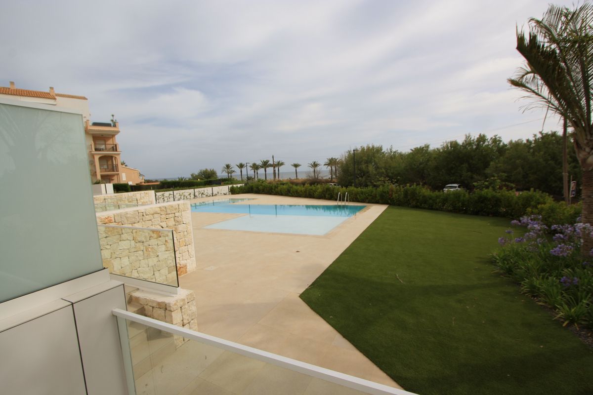 Luxury newly built apartment for sale located on the front line of the beach in Denia. Ground floor with private pool and garden. It has a total constructed area of approximately 313 m2. Exclusive luxury residence distributed over 3 bedrooms, 2 bathrooms (one of which is en suite in the master bedroom), a spacious open-plan living-dining room-kitchen, and a laundry area. One of the bedrooms has direct access to a private uncovered terrace and the living room also has access to another spacious covered and uncovered terrace. An external parking space is included in the price. This luxury residential property on the front line of the beach has been designed for maximum comfort and sophistication, where the spaciousness of the areas and the magnificence of its terraces redefine the concept of elegance and well-being. It also offers direct access to the sea, providing an unparalleled experience of serenity and distinction. The homes are equipped with first-class qualities: built-in wardrobes, underfloor heating, and ducted air conditioning. The kitchen, with designer furniture and cabinets, is designed to offer you maximum comfort and style. It is located just a few steps from the city center and all services. Optional storage rooms starting from €19,000 or individual closed box garages with car chargers for €69,000.