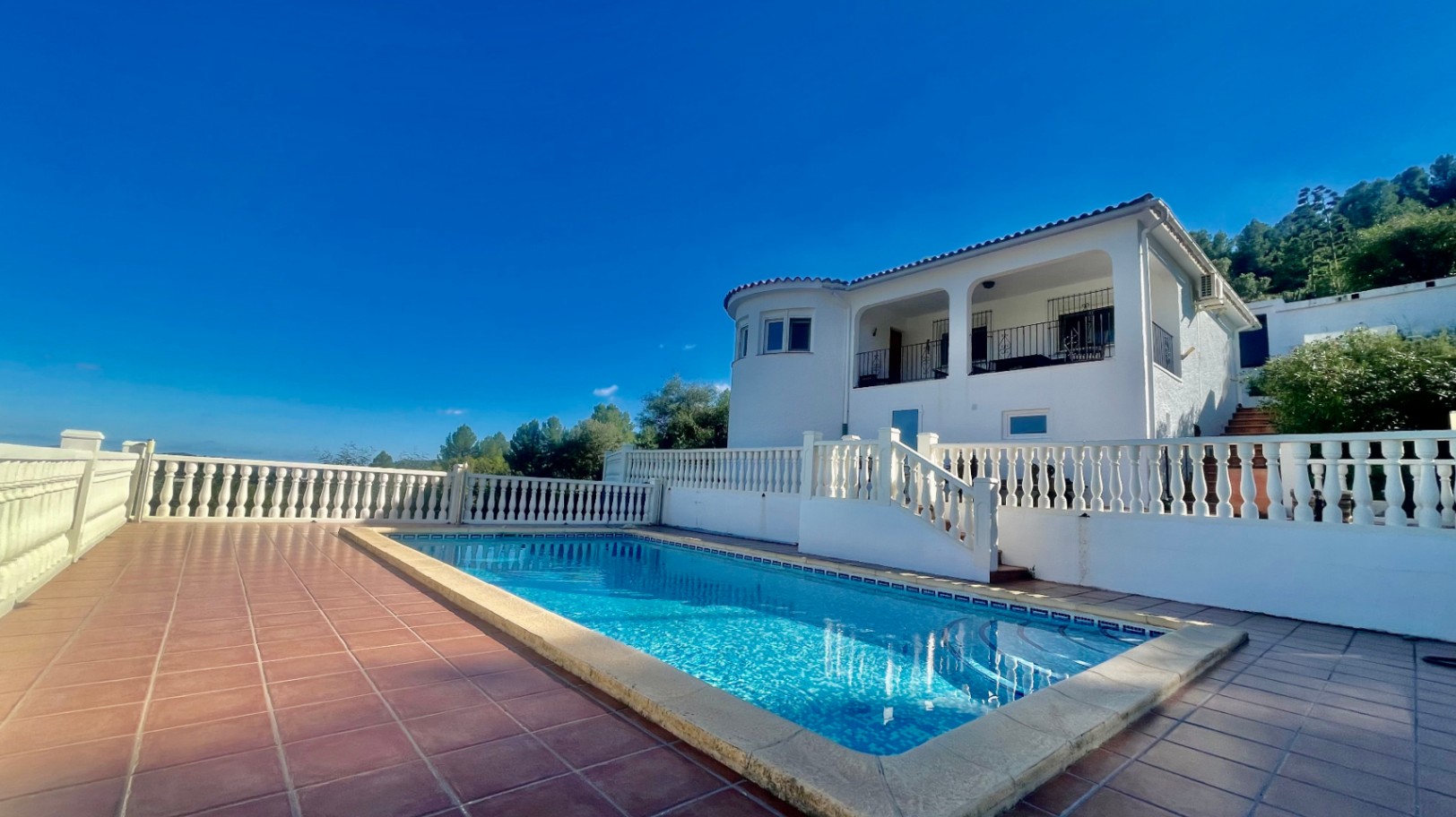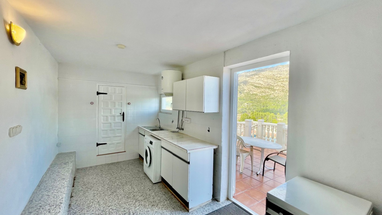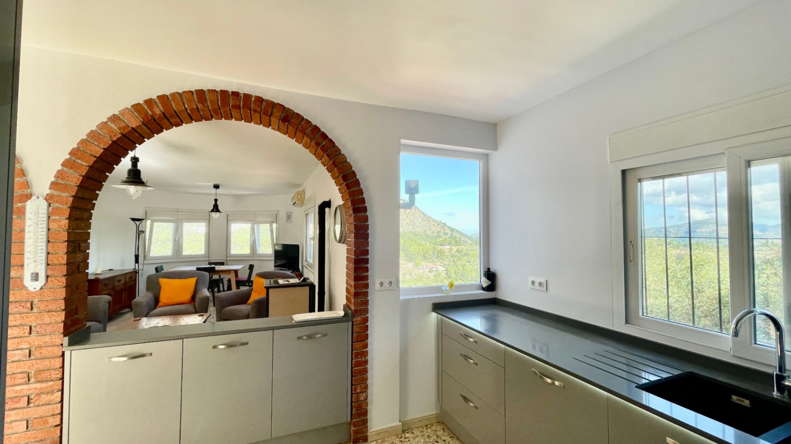 Deze prachtig gepresenteerde vrijstaande villa biedt volledige privacy en een adembenemend uitzicht op de bergen, genesteld in een rustige landelijke omgeving dicht bij het charmante dorpje Benigembla. Omgeven door de natuur is het de perfecte plek voor wie op zoek is naar rust zonder ver van het dorpsleven verwijderd te zijn.De hoofdwoning beschikt over een uitnodigende hal die leidt naar een ruime open woon- en eetkamer met een vrijstaande pelletkachel, warme en koude airconditioning en een deur die leidt naar een grote overdekte naya met uitzicht op het privézwembad en de prachtige bergen op de achtergrond – een ideale ruimte om het hele jaar door buiten te leven.De moderne, hoogwaardige keuken is volledig ingericht en voorzien van een ontbijtbar. Een gang leidt naar de hoofdslaapkamer met inbouwkasten, airconditioning (warm en koud) en een ruime ensuite badkamer met inloopdouche. Er is ook een slaapkamer met twee eenpersoonsbedden en inbouwkasten, een derde slaapkamer of kantoor en een familiebadkamer met douche.Daarnaast beschikt de woning over een aparte, zelfstandige gastensuite met één slaapkamer, een eigen keuken-eetkamer en een badkamer met douche, perfect voor gasten of familie.Buiten vindt u een fantastisch privézwembad met zonneterras, ideaal om te ontspannen en te genieten van het uitzicht, een grote garage met een berging, een aparte opslagruimte en een afgesloten oprit met voldoende parkeergelegenheid.Andere kenmerken zijn dubbele beglazing en talrijke doordachte details.Als u op zoek bent naar een rustig toevluchtsoord op het platteland met een spectaculair uitzicht, dan moet u deze uitzonderlijke villa zeker komen bekijken om haar volledig te kunnen waarderen.