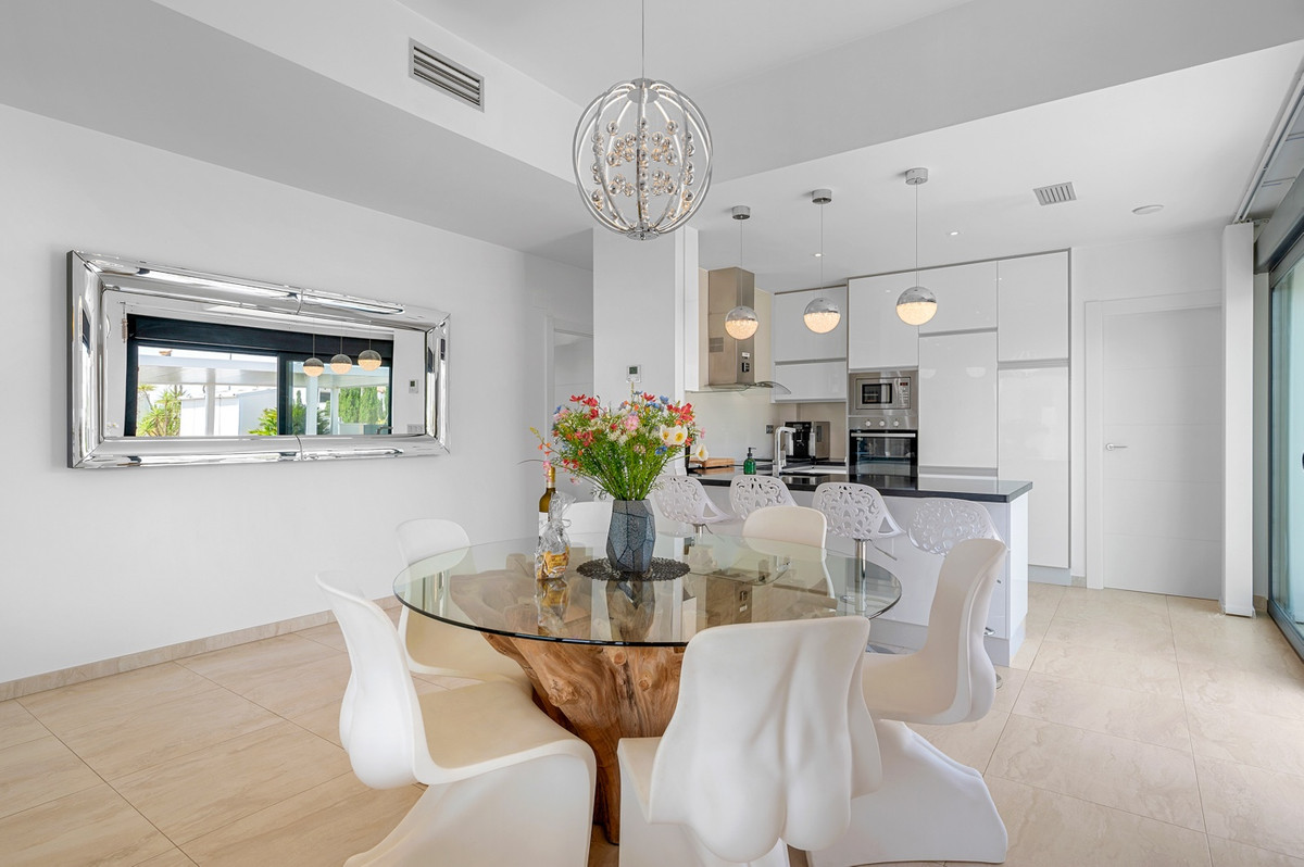 De villa beschikt over drie ruime slaapkamers met inbouwkasten en twee volledig uitgeruste badkamers, waarvan één en suite. De open keuken is naadloos verbonden met de eet- en woonkamer, die helder en uitnodigend is en directe toegang biedt tot het terras en het privézwembad. Daarnaast is er een aparte wasruimte aanwezig.