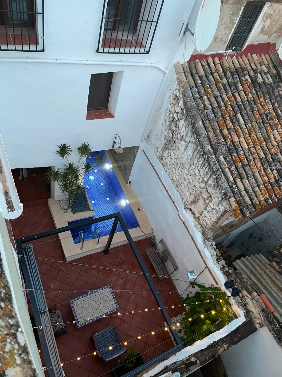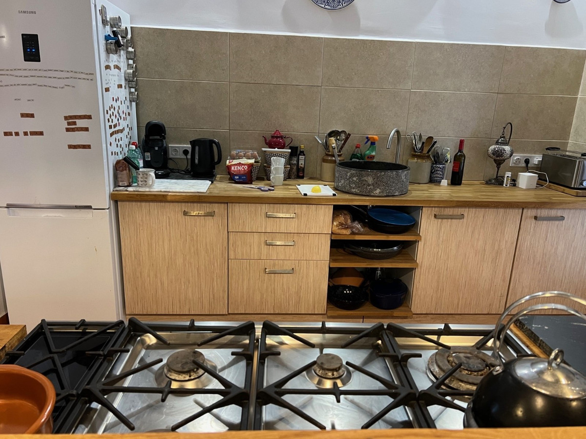 De villa heeft 5 slaapkamers en 4 badkamers, 1 apart toilet en een open keuken en een gezellige woonkamer.De slaapkamers en badkamers zijn verdeeld over 3 verdiepingen. Ook zijn er verschillende terrassen met uitzicht op de bergen op de verschillende verdiepingen en een gedeeltelijk overdekt zwembad op het beneden terras.
