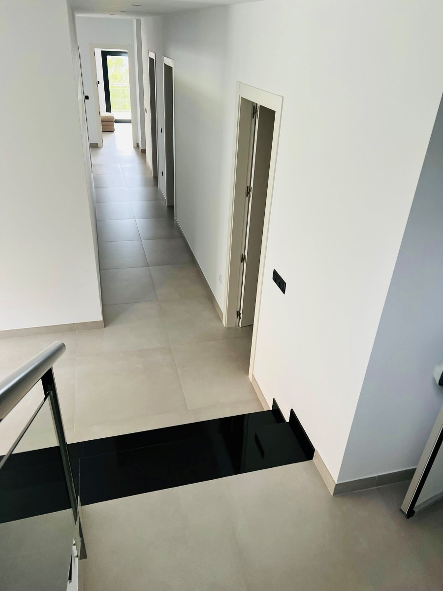 Op de begane grond vinden we een woonkamer van 30m2, 4 slaapkamers en 2 badkamers, een speelkamer met tafeltennis, bioscoop, wijnkelder, koelruimte en een zeer grote garage voor 5 grote auto’s.