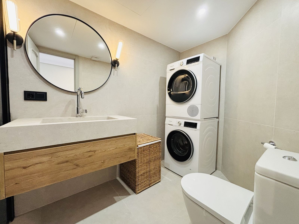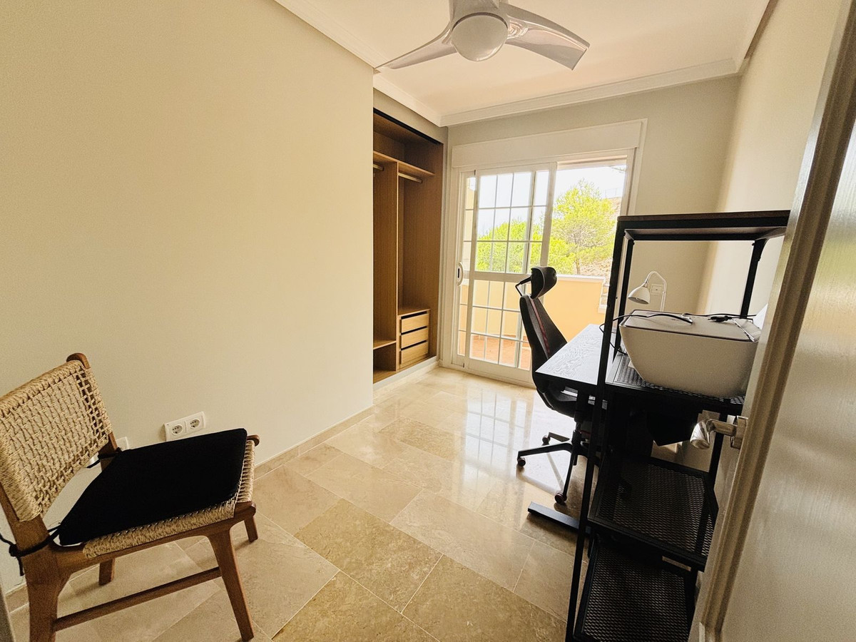 Inside, you'll find a bright and airy living room with dual access to both spacious terraces—ideal for relaxed breakfasts and alfresco dining. The independent, fully equipped kitchen is generously sized, and all three bedrooms feature built-in wardrobes. Two of the bedrooms offer direct access to different terraces. Comfort is assured year-round with cold/ hot air conditioning in every room.