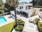 A contemporary villa located in the heart of Nueva Andalucia, within walking distance to amenities including supermarkets, restaurants and Centro Plaza Commercial Centre and just few minutes' drive to the best golf courses in the area. This property has a South-East orientation with sun all day on the pool and stunning views of La Concha Mountain and towards the sea. Built over three floors, the main level features an open-plan design with spacious living areas leading directly out onto the large terrace with various seated areas ideal for entertaining, two guest bedrooms suites and a guest toilet. Upstairs is dedicated to the large master bedroom suite with dressing area and private terrace. On the lower level there is a further guest bedroom with ensuite bathroom, guest toilet and games room. The garden area is easily maintained and carport for up to 3 cars.