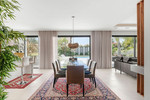 Welcome to this modern and very well built house in the lower Nueva Andalucia area. As you enter you are greeted with a large open kitchen that leads to the dining and living area, from here you can access the large covered terrace and onto the pool area with ample space for sunbathing and with an outdoor shower. On the main floor you have a bedroom onsuite currently used as an office. On the first floor you have 3 bedroom onsuite, all with access to a covered terrace. From here you have stairs leading onto the solarium which has been fitted with solar panels yet leaving space to create an entertaining space. In the basement floor floor you have the laundry area, a 2nd guest toilet, a bedroom suite, a large room that could be used as a cinema room etc and lastly a large garage for up to 4 cars. All floors are accessed by stairs or an elevator. The technology in the house is modern with water based underfloor heating powered by aerothermic system, the ac is thorugh the Airzone system, water filters & solar panels make this house very efficient to live in. A house in a very central position makes this a perfect all year living or a holiday home with the added bonus of being an attractive rental property due to its size and location.