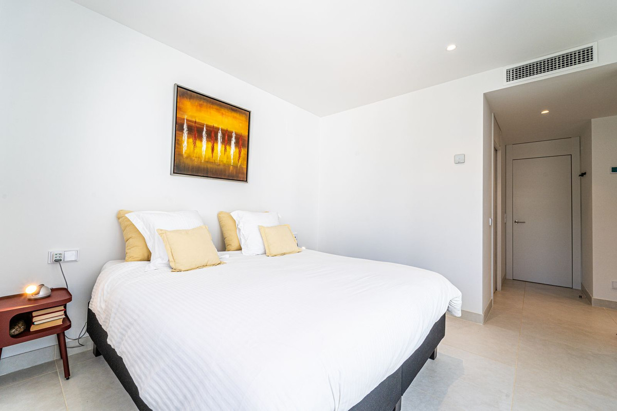 Luxury west facing apartment, in the exclusive urbanization of HiguerĂ³n West, with 3 bedrooms, 2 bathrooms, spacious living-dining room, open plan kitchen fully furnished and equipped with electricial appliances from Bosch including american fridge/freezer and wine cooler, laundry area with washing machine and dryer, large terrace of 54m2 with garden views. Master bedroom with walk-in closet, open plan bathroom and access to a small terrace of 5m2. Air conditioning hot and cold, video intercom, domotic system, built-in wardrobes in all bedrooms and hall entrance, electric awnings on main terrace and electric curtains in living room and bedrooms, pre-installation alarm system, under floor heating throughout all the apartment. Includes two parking spaces and one storage room.