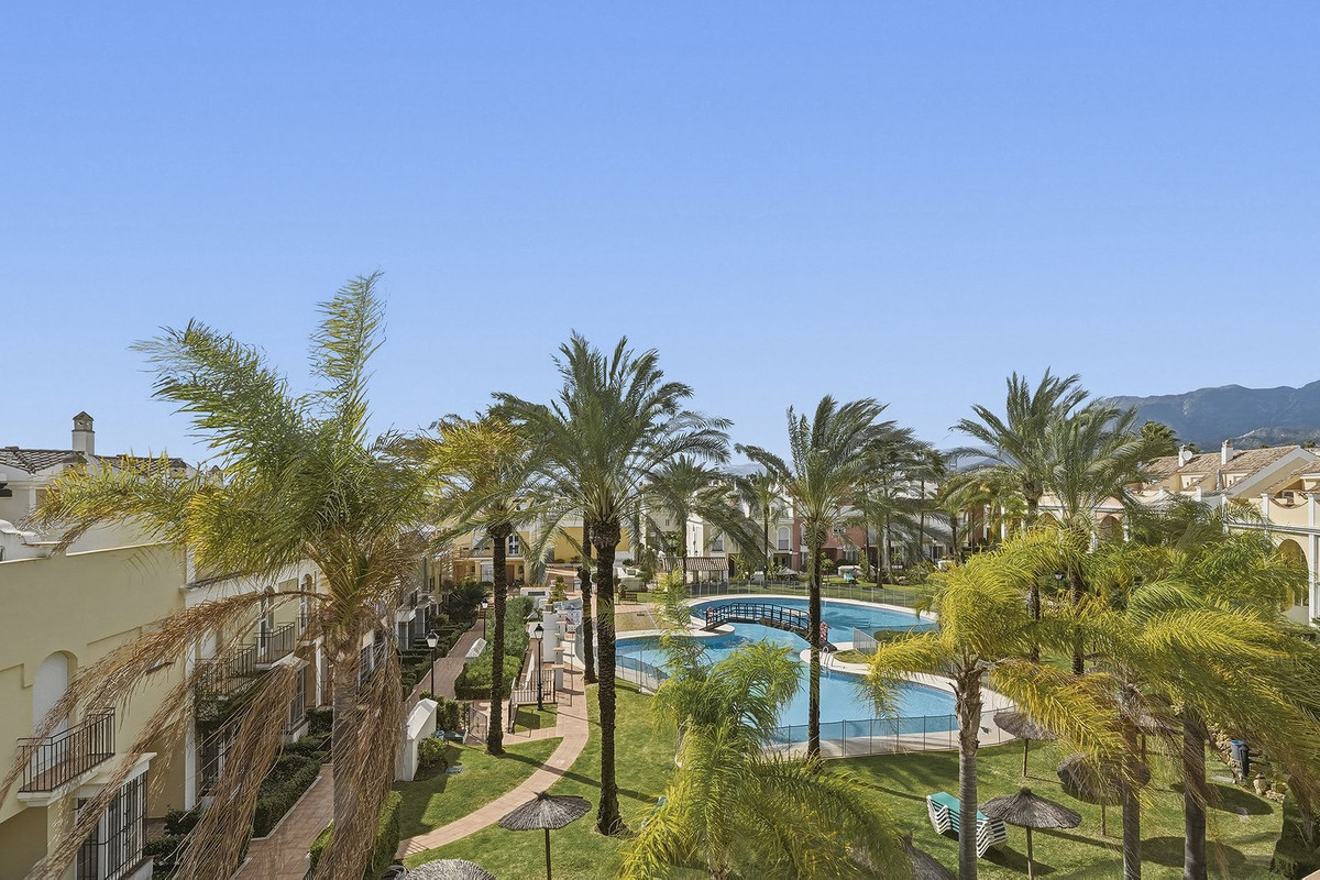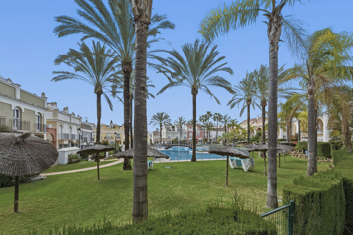 Nestled within one of Bahía de Marbella's most sought-after beachfront urbanizations, this stunning townhouse offers an unparalleled coastal living experience. Imagine waking up to the sound of the waves and having direct, private access to the golden sands of the beach just steps from your door. This exclusive community provides peace of mind with 24-hour security, ensuring a safe and serene environment for you and your family. The meticulously manicured lush gardens create a vibrant oasis, complemented by an extraordinarily large and beautiful swimming pool, perfect for leisurely dips on warm Mediterranean days.