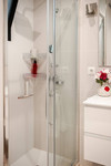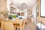 Het appartement beschikt over een volledig uitgeruste keuken, twee goed verdeelde slaapkamers en een complete badkamer met een ruime douche. De woonkamer komt direct uit op een groot terras omgeven door weelderige tuinen, een perfecte ruimte om buiten te eten, te ontspannen in de zon, of momenten te delen in een rustige omgeving.