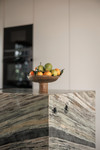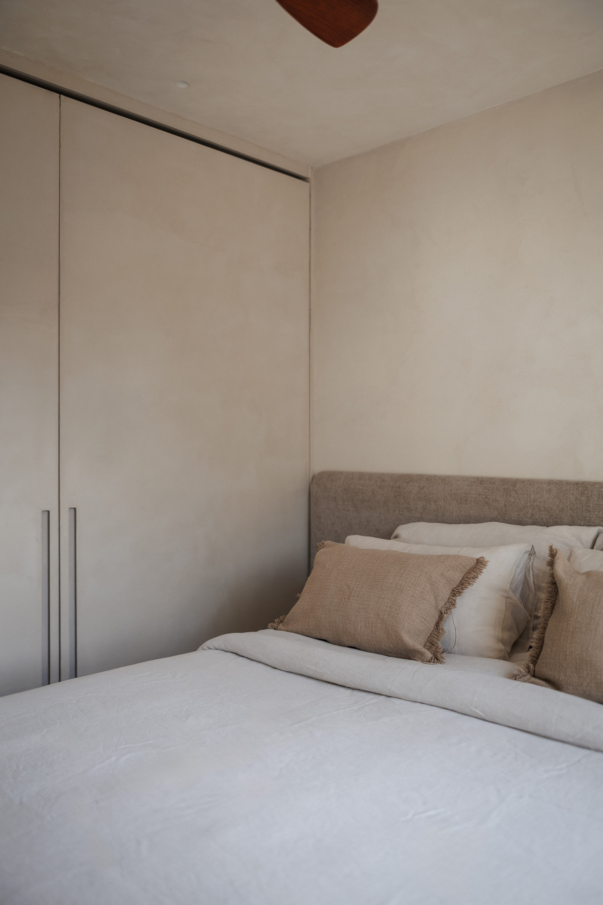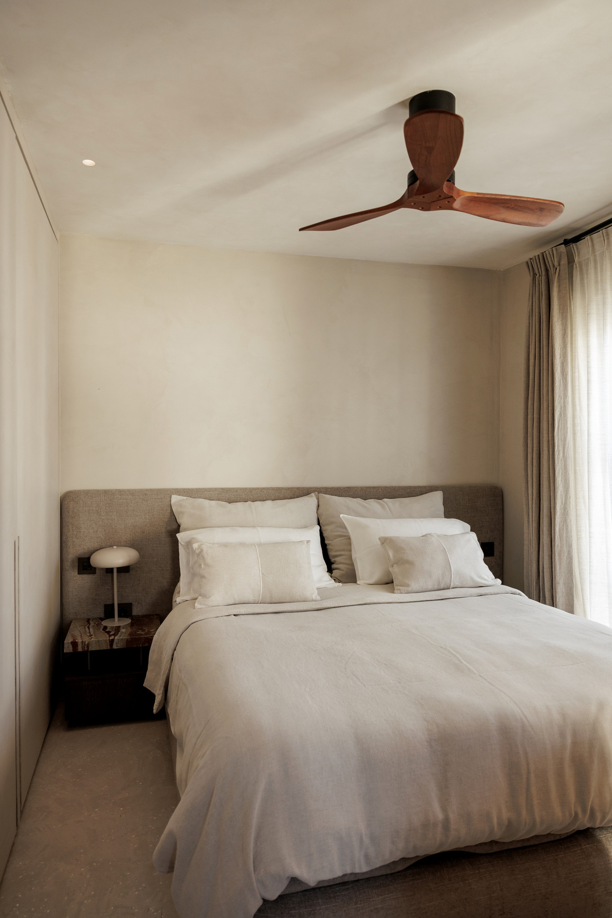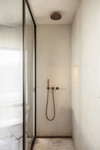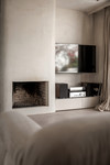 Boven beschikt de mastersuite over een op maat gemaakt hoofdbord met geïntegreerde kastruimte, wat elegantie en functionaliteit combineert. Een tweede slaapkamer met eigen badkamer biedt comfort en privacy voor gasten. Beide badkamers zijn afgewerkt met luxe marmer.