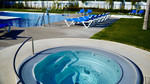 A sunbathing area with loungers and a large umbrella, perfect for soaking up the afternoon sun.