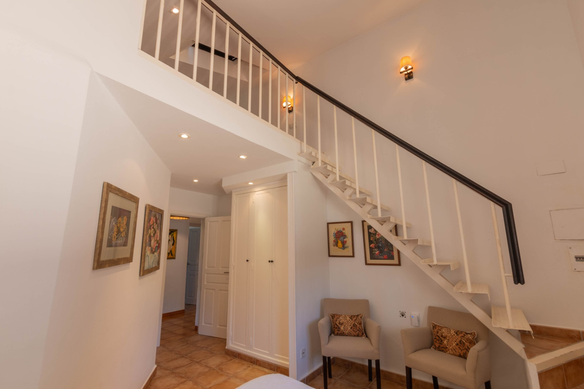 De villa beschikt over vier goed ingedeelde slaapkamers, waaronder een ruime hoofdsuite met een grote inbouwkast en een elegante en-suite badkamer. Een van de gastenkamers heeft een vide, terwijl een van de kleinere kamers momenteel wordt gebruikt als privé-kantoor thuis—ideaal voor telewerken of een creatieve ruimte. Een moderne gastenbadkamer is toegankelijk voor de overige verblijven.