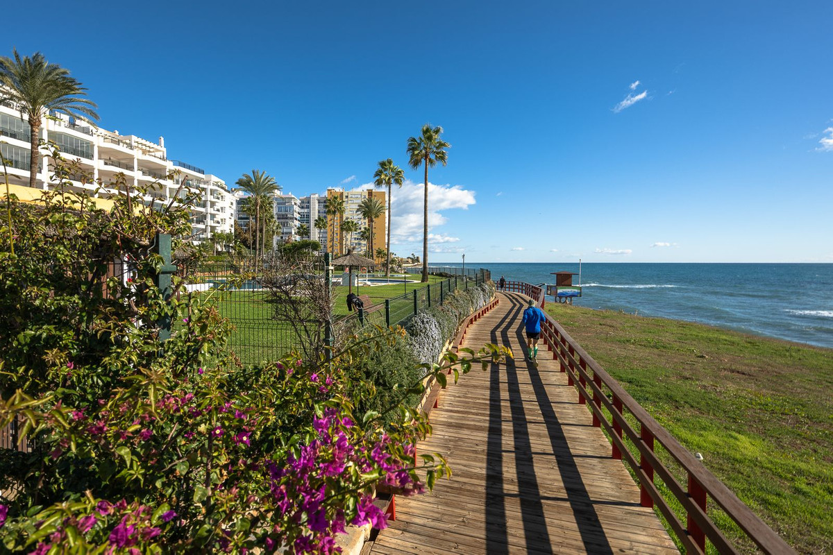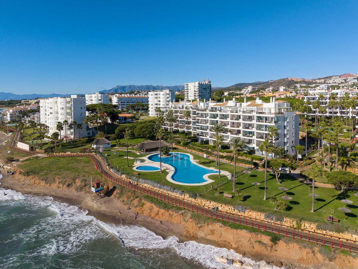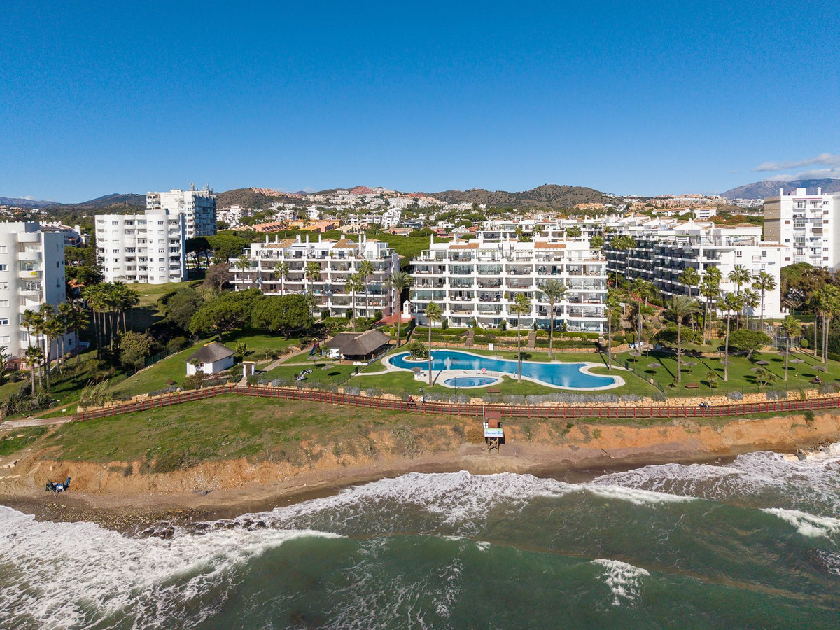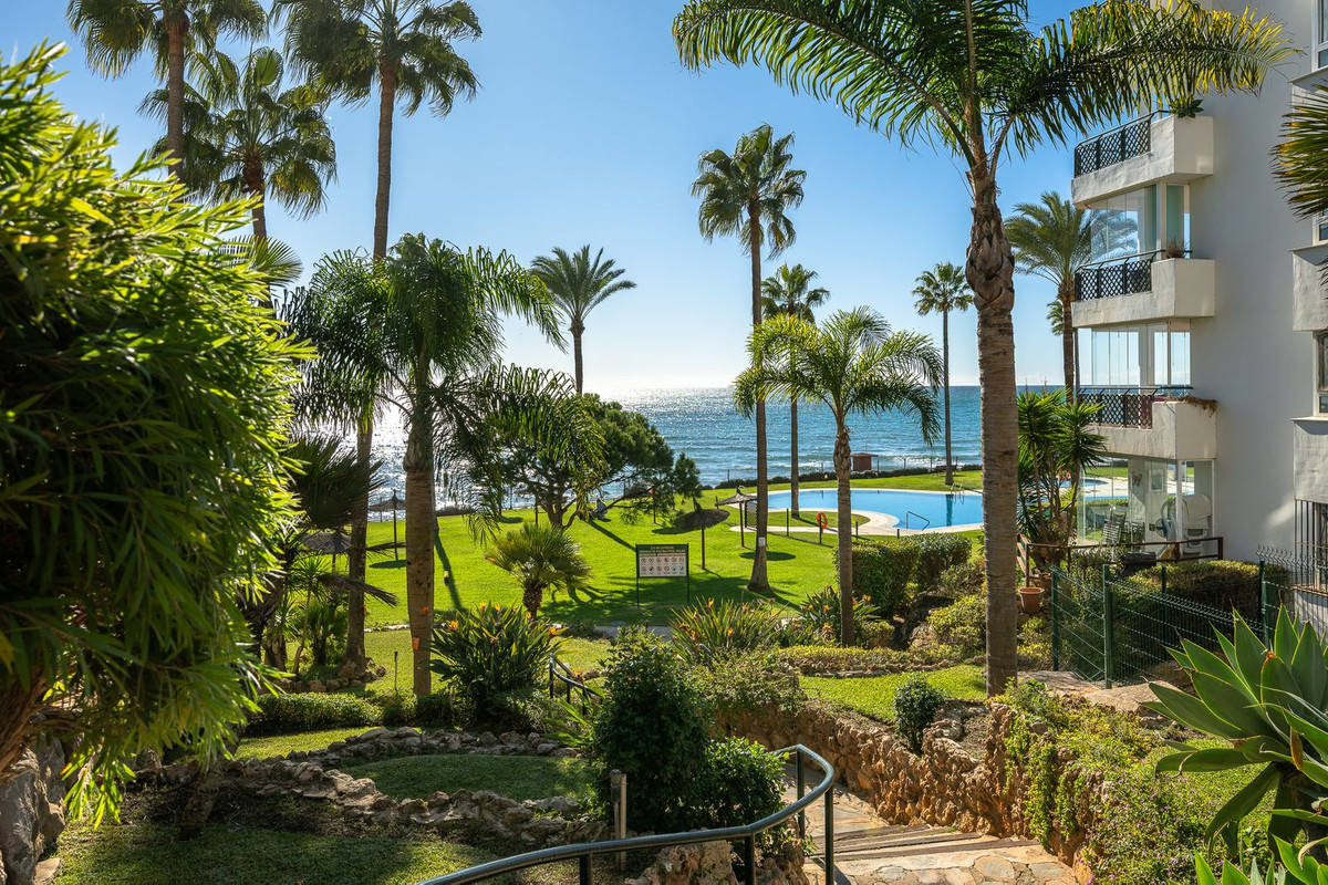 Frontline Beach 2-Bedroom Apartment in Mi Capricho, Calahonda We are delighted to present this beautiful 2-bedroom, 2-bathroom beachfront apartment, ideally located in the prestigious and well-established Mi Capricho urbanisation in Sitio de Calahonda, Mijas Costa. Set within an exclusive gated community with direct access to the promenade and beach, this property offers an exceptional blend of lifestyle, comfort, and investment potential on the Costa del Sol. Positioned on the second floor and accessible by both lift and stairs, the apartment is ready to move into and is sold fully furnished, featuring tasteful finishes and exclusive details throughout. The bright and spacious living area opens seamlessly onto a large private terrace with both dining and lounge areas, where you can enjoy stunning views of the Mediterranean Sea, the communal swimming pools, and the beautifully landscaped gardens accompanied by refreshing sea breezes and the gentle sound of the waves. The apartment offers two generous bedrooms, both with built-in wardrobes. The master bedroom features an en-suite bathroom and direct access to the terrace, while the second bedroom is fitted with two single beds that can be arranged together or separately. Both bathrooms have been stylishly renovated and include underfloor heating, adding an extra level of comfort and luxury. A separate fully equipped kitchen and utility room complete the interior layout. The Mi Capricho community is renowned for its excellent maintenance and welcoming atmosphere. Residents enjoy 24-hour security, daytime concierge service, and nighttime caretaking, along with two large swimming pool areas for adults, separate children's pools, lush manicured gardens with flowers, lawns, palm trees, playgrounds, a fenced children's ball court, guest parking, and a poolside bar serving food and drinks. The upper pool is open year-round, while the lower pool operates from April to October with lifeguard supervision. Conveniently, there are also two communal toilets within the complex. The entire development faces the sea and offers expansive outdoor areas with benches and ample space for sun loungers, whether in shaded areas or full sun. Residents may use their own loungers or rent them directly from the pool bar. The complex features two direct exits to the beachfront promenade, one of which is equipped with a wheelchair- and stroller-friendly ramp. From here, you can enjoy scenic walks stretching from Fuengirola and La Cala de Mijas to Cabopino and Marbella. Additional features include an underground garage parking space, also accessible by lift. For those who prefer not to drive, bus stops and taxi ranks are within easy walking distance, offering direct connections to Fuengirola and Marbella. The Seamen's Church is nearby and hosts regular events and activities for both adults and children, with numerous restaurants, bars, shops, and services located along the way. Ideally situated within walking distance of La Cala de Mijas, with its charming village atmosphere, beaches, restaurants, and amenities, and just 39 km from Málaga Airport, this apartment is perfectly positioned for year-round living or rental demand. Whether you are seeking a luxury holiday home, a stylish permanent residence, or a strong rental investment, this exceptional frontline beach apartment truly ticks every box.
