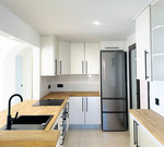 Het appartement heeft drie ruime slaapkamers, waaronder een elegante master suite met aangrenzende badkamer, en een tweede moderne badkamer. De grote, lichte woonkamer heeft een nieuwe, volledig uitgeruste open keuken, die liefhebbers van gezelligheid en gastronomie zal bekoren. Een functionele bijkeuken maakt de inrichting van deze leefruimte compleet.