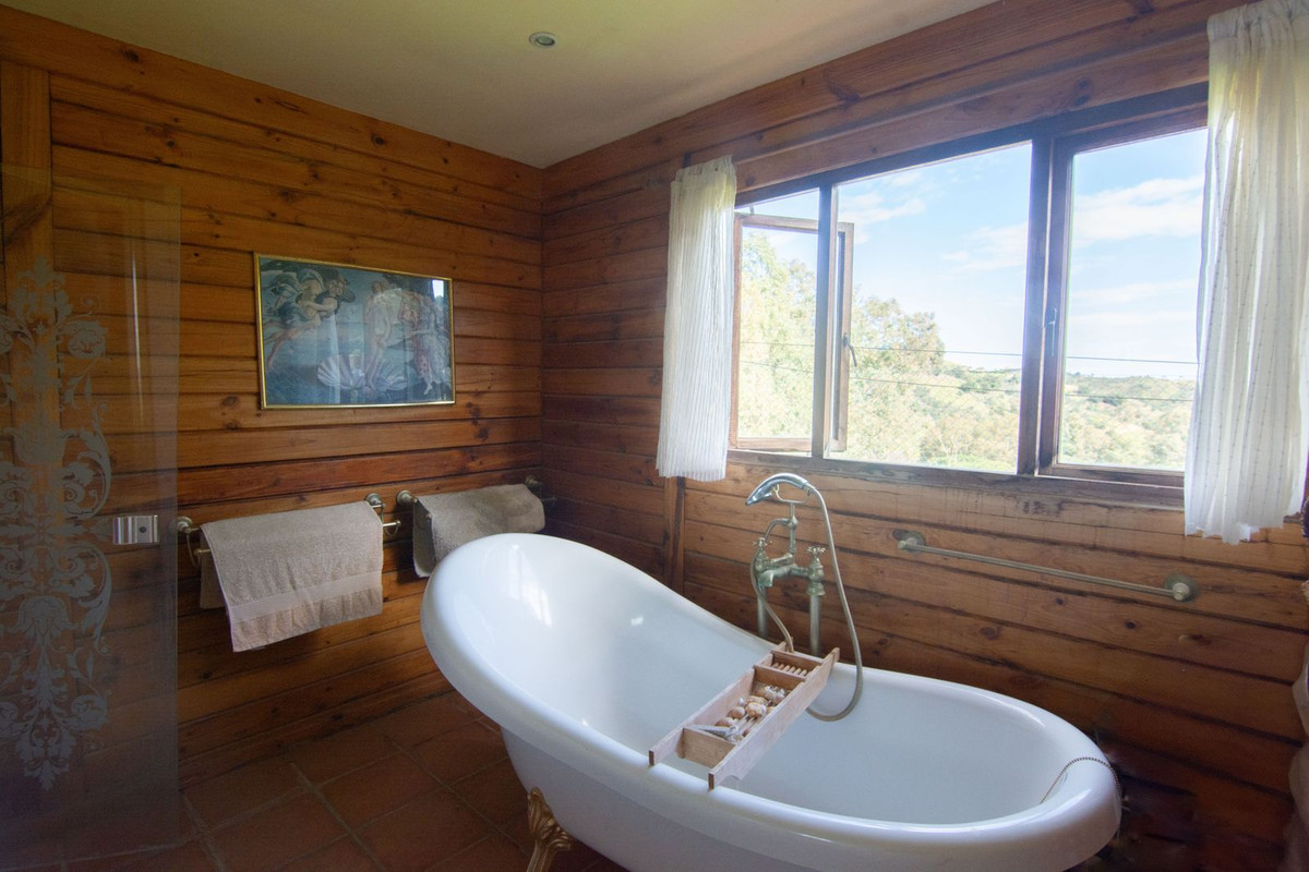 This charming finca, located in Mijas Costa, offers a solid wooden house with stunning open views of the surrounding mountains. Nestled in a protected natural area between La Cala Golf and La Mairena, the property is fully fenced and includes facilities for up to 4 horses, with boxes, a riding arena, and a tack and hayloft. The main house features 3 spacious bedrooms, each with an en-suite bathroom, and an open-plan kitchen and living area. Additional amenities include air conditioning, a fireplace, solar panels, water tanks, and a small cabin. The plot spans 6,200 m², offering both privacy and natural beauty.