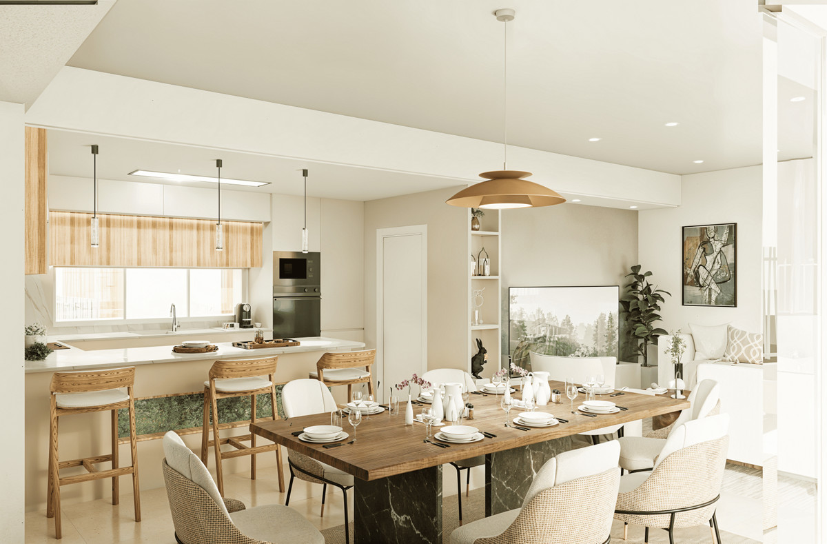 Eigentijds design met moderne lijnen, zonder de mediterrane warmte te verliezen. Ruime kamers vallen op door hun lichtinval en hoogwaardige afwerkingen.