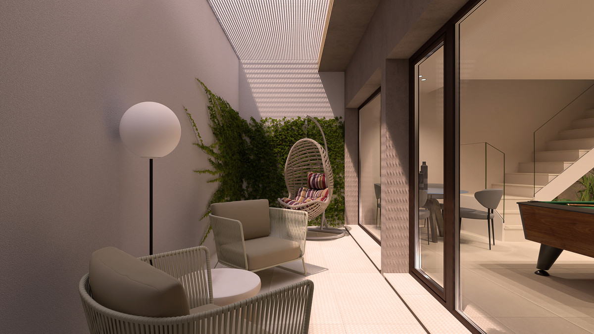 Dit project brengt een frisse wind in de omgeving en maakt optimaal gebruik van de spectaculaire zonsondergangen. Het is een woning met twee verdiepingen, die een programma ontwikkelt met een grote woon-eet-keukenruimte, evenals twee suites op de begane grond en nog een op de eerste verdieping, samen met een kantoorruimte.