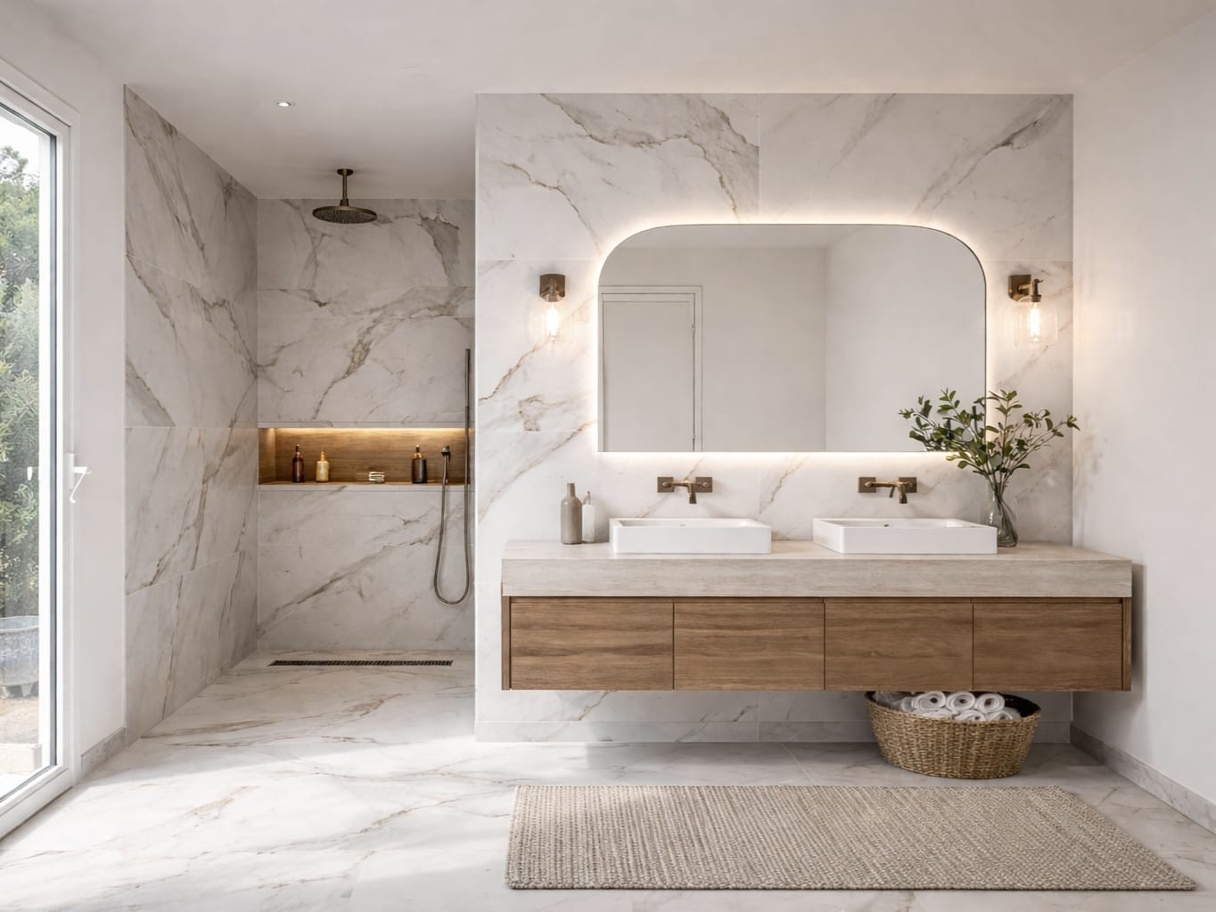 De villa beschikt over in totaal vier slaapkamers en vier badkamers. De benedenverdieping omvat een slaapkamer, twee badkamers en een lounge, die gemakkelijk kan functioneren als een privé gastenverblijf voor bezoekers of familieleden, wat extra onafhankelijkheid en flexibiliteit biedt.