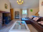 - Main living room with free-standing wood-burner and patio doors.