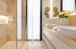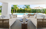 The villa is surrounded by beautifully landscaped gardens and features a private swimming pool, multiple terraces, and a spectacular rooftop solarium with panoramic sea views. These outdoor areas are designed to maximize natural light and sun exposure throughout the day, creating the perfect environment to enjoy stunning sunsets. A stylish bioclimatic pergola, complete with a fully equipped outdoor kitchenette, enhances the outdoor lifestyle, making entertaining and al fresco dining effortless.