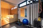 Inside, the home offers a bright open-plan layout, seamlessly combining a designer kitchen, dining area, and spacious living room. Floor-to-ceiling windows flood the interiors with natural light while creating a seamless connection with the outdoor spaces. A private lift connects all levels of the villa, adding both convenience and a touch of luxury.