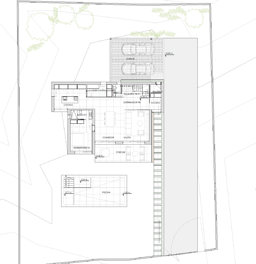 Deze woning is ontworpen als een volledig comfortabel en ruim huis. Een huis waar u van kunt genieten zonder dat u trappen hoeft te gebruiken, aangezien het een tweepersoonsslaapkamer op de begane grond heeft, de tuin en het zwembadgedeelte zich op hetzelfde niveau bevinden, en dat geldt ook voor de parkeerplaats.