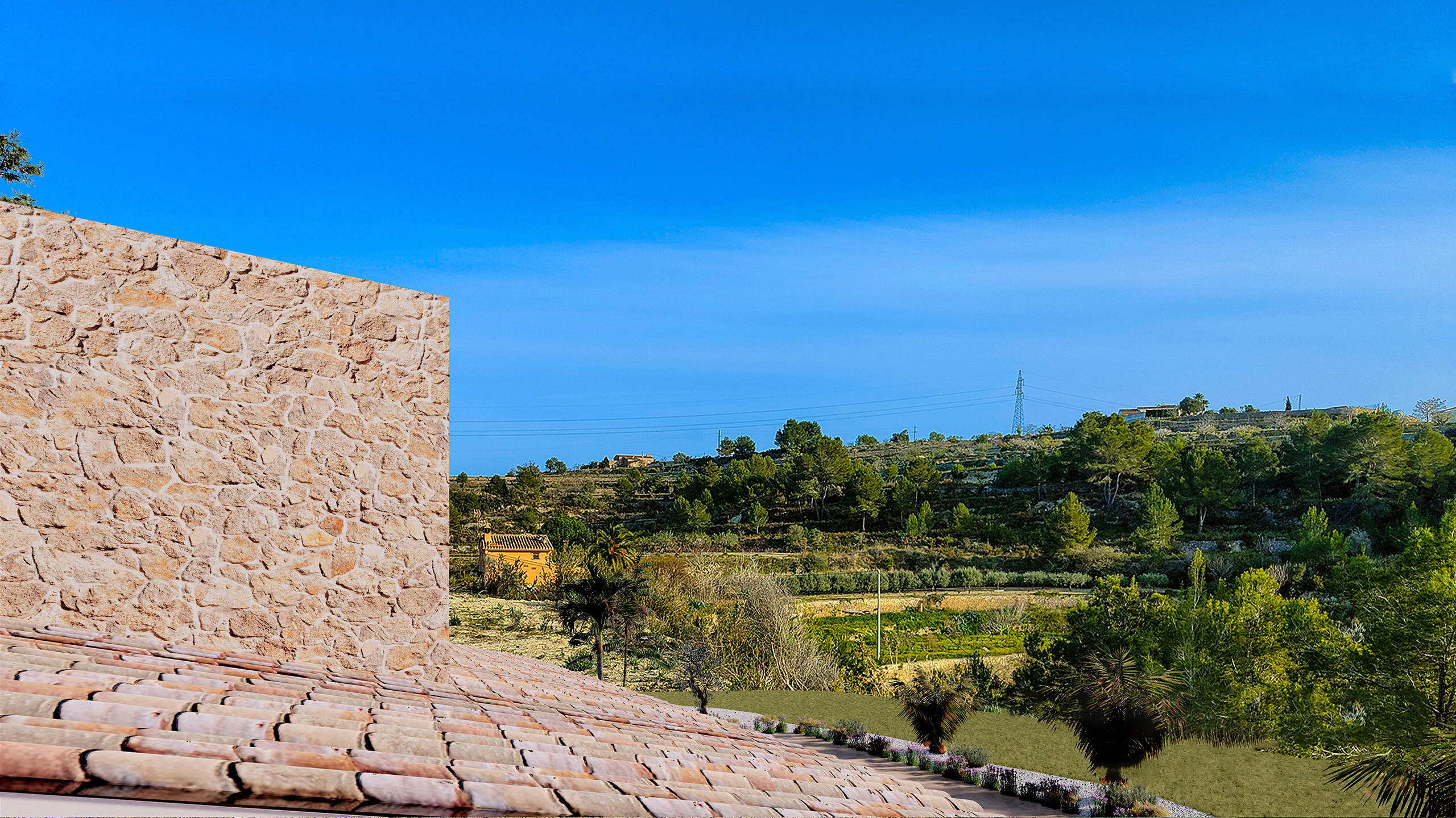 De buitenruimte is een waar hoogtepunt: een aangelegde mediterrane tuin met inheemse planten, waaronder palm- en olijfbomen, wijngaarden en een privézwembad, ontworpen om optimaal te profiteren van het bevoorrechte klimaat van de Costa Blanca. Ruime parkeergelegenheid en uitgestrekte terreinen bieden zowel functionaliteit als toekomstpotentieel.