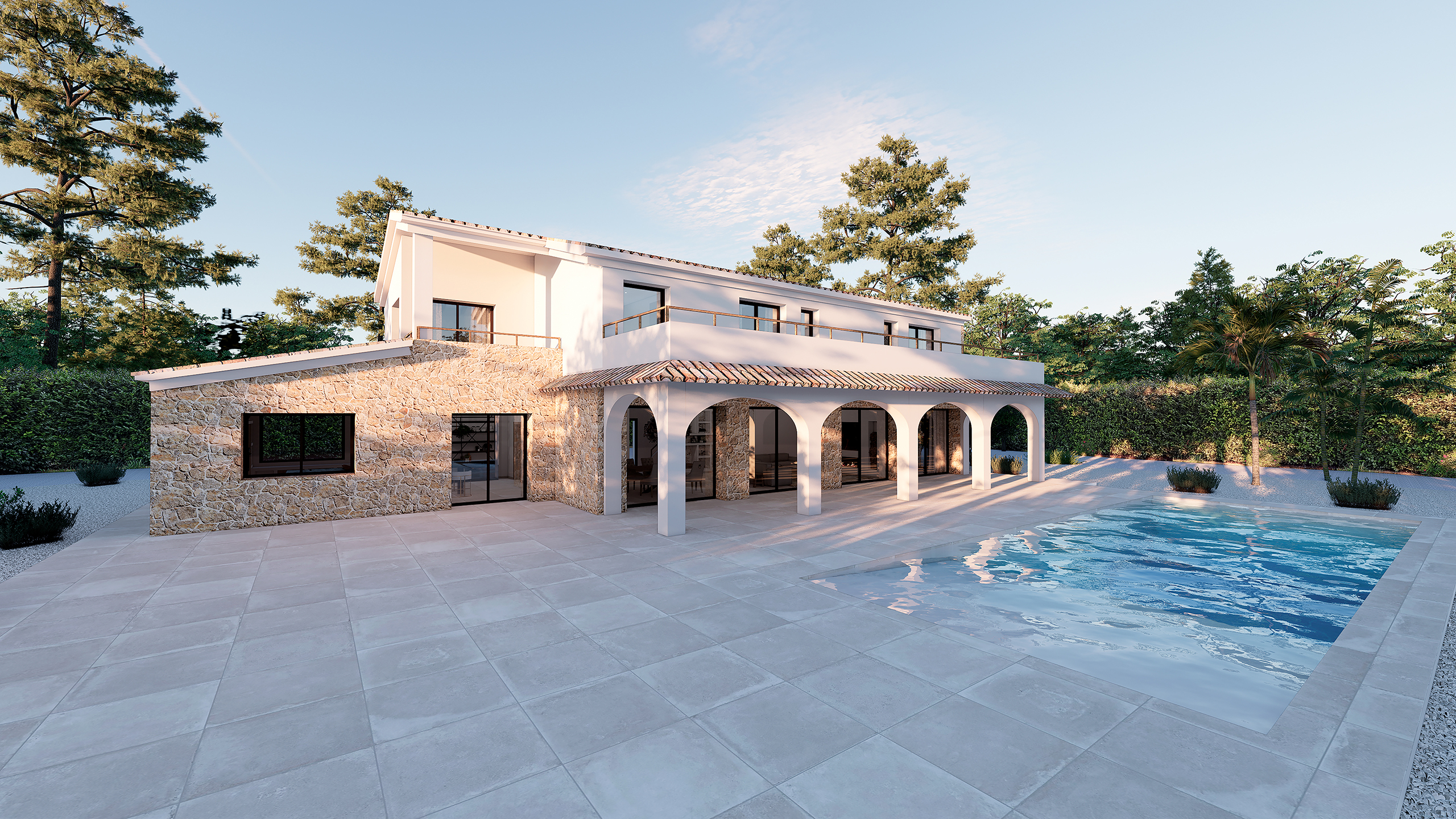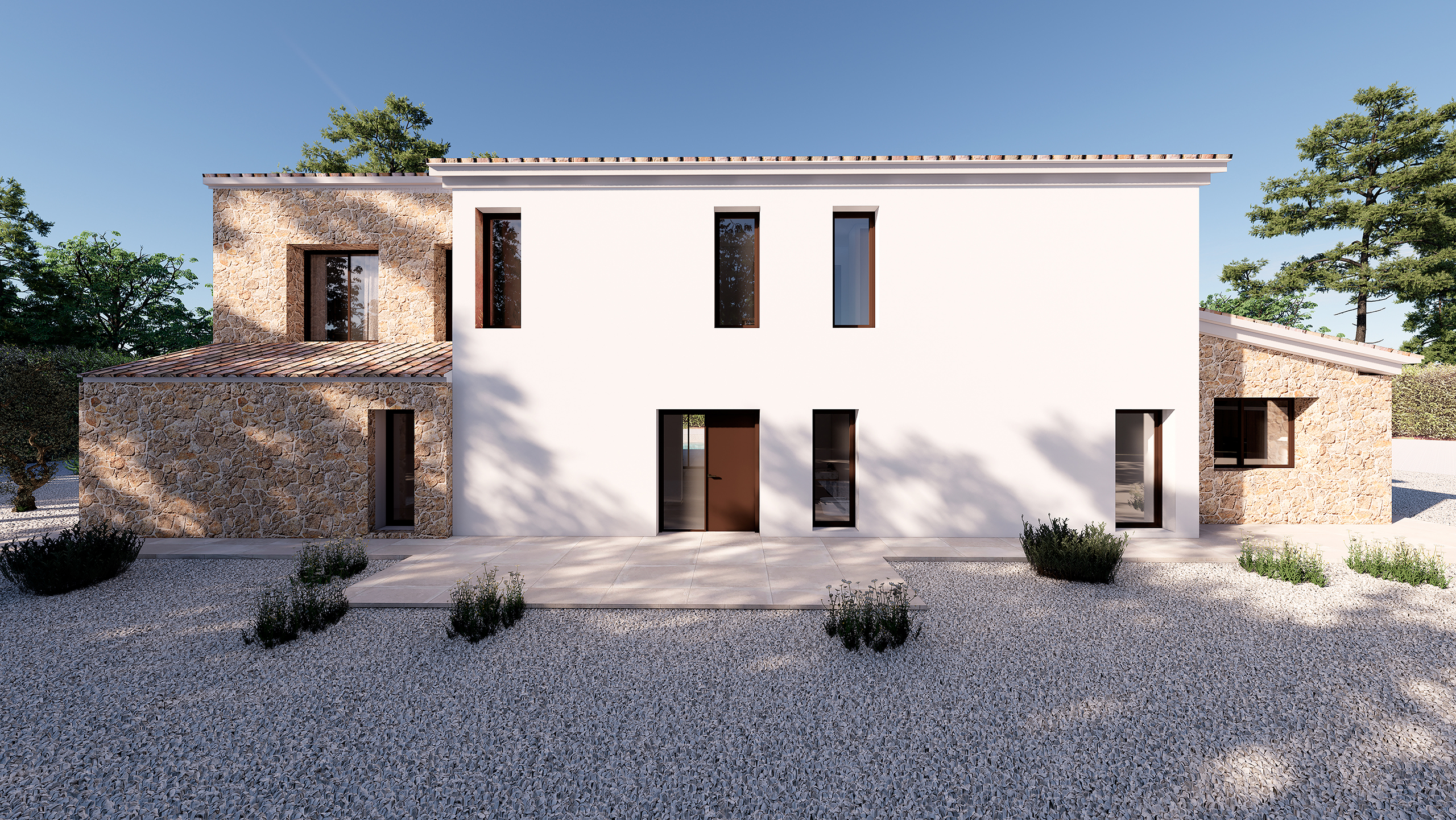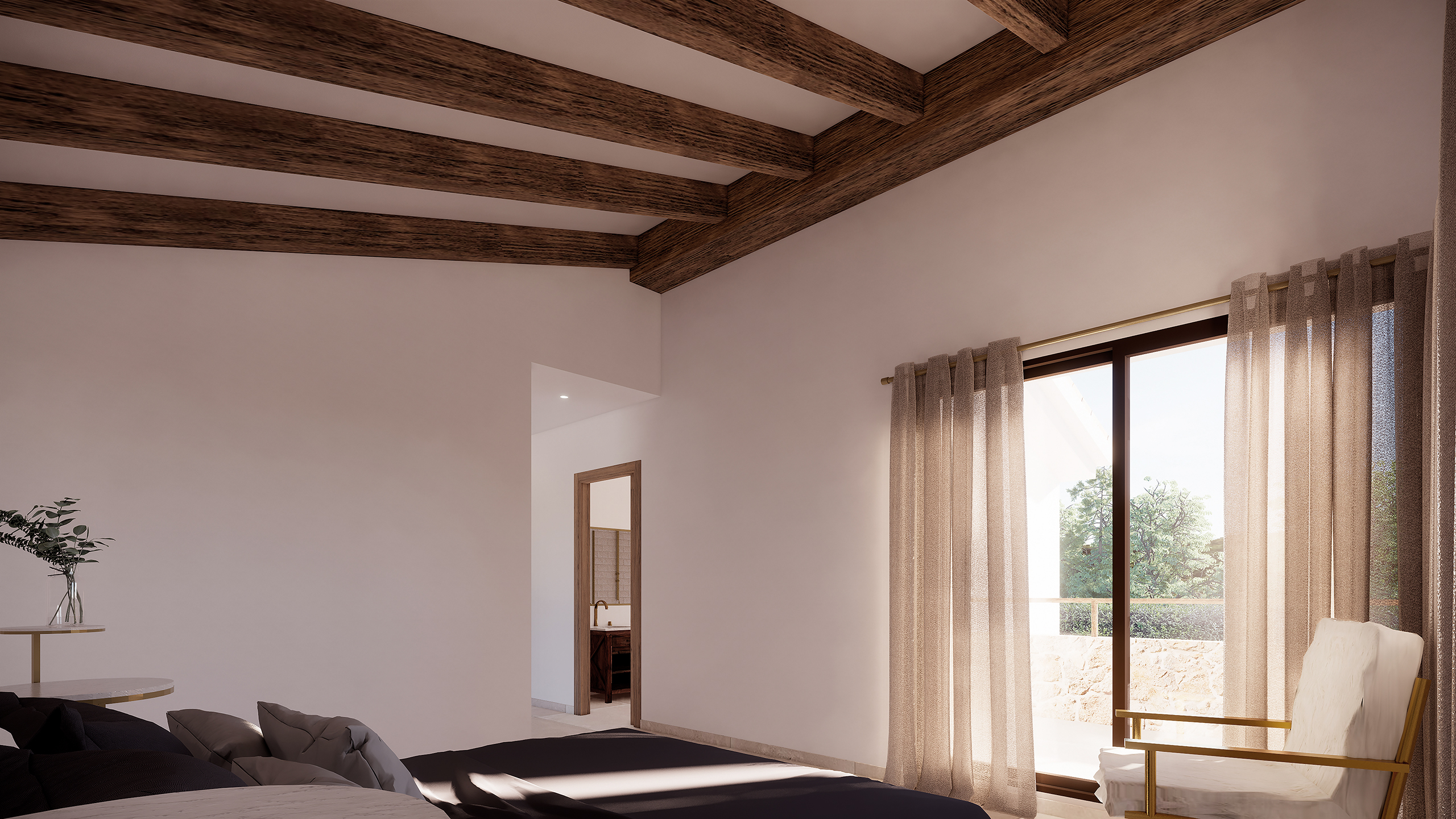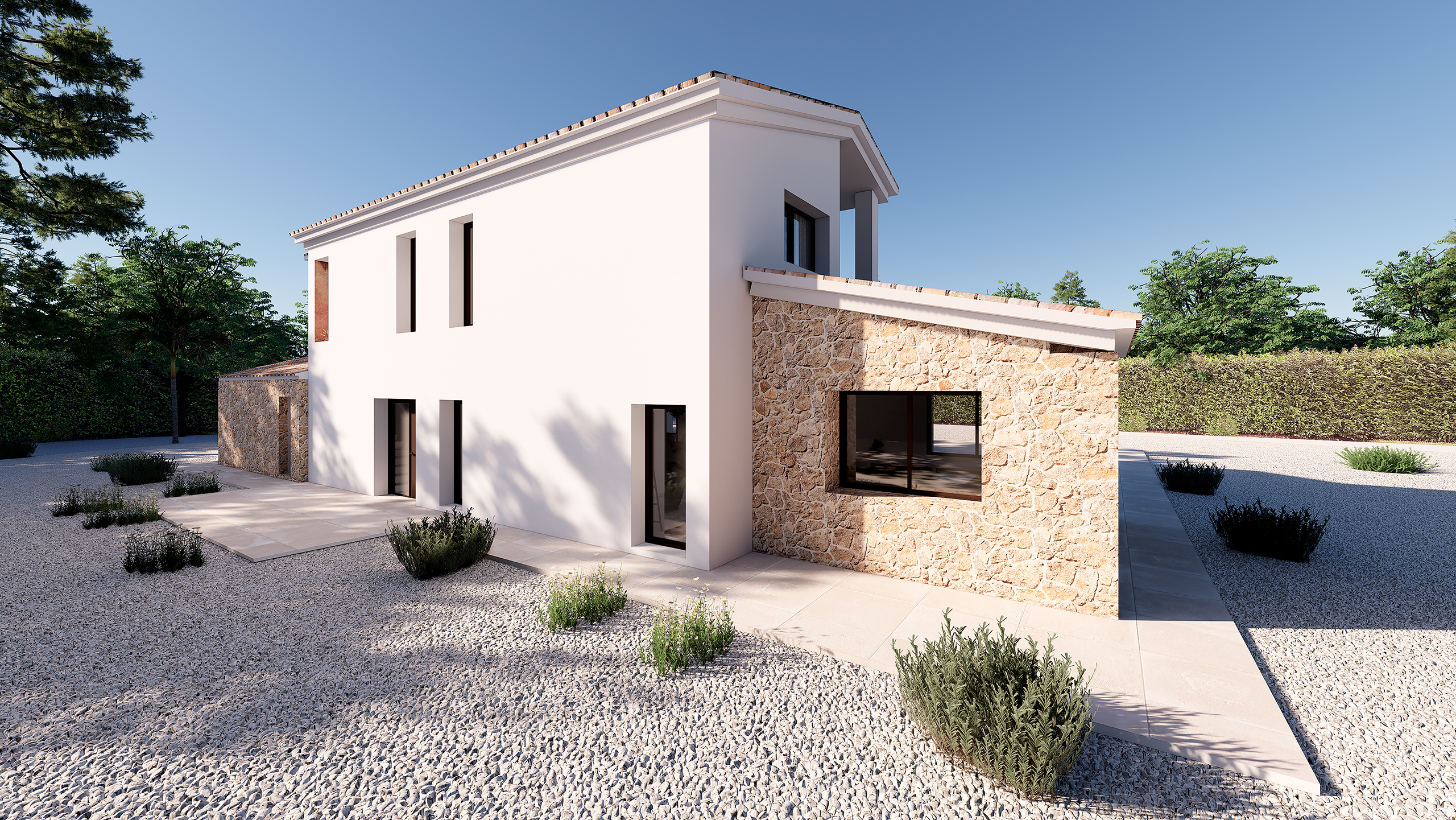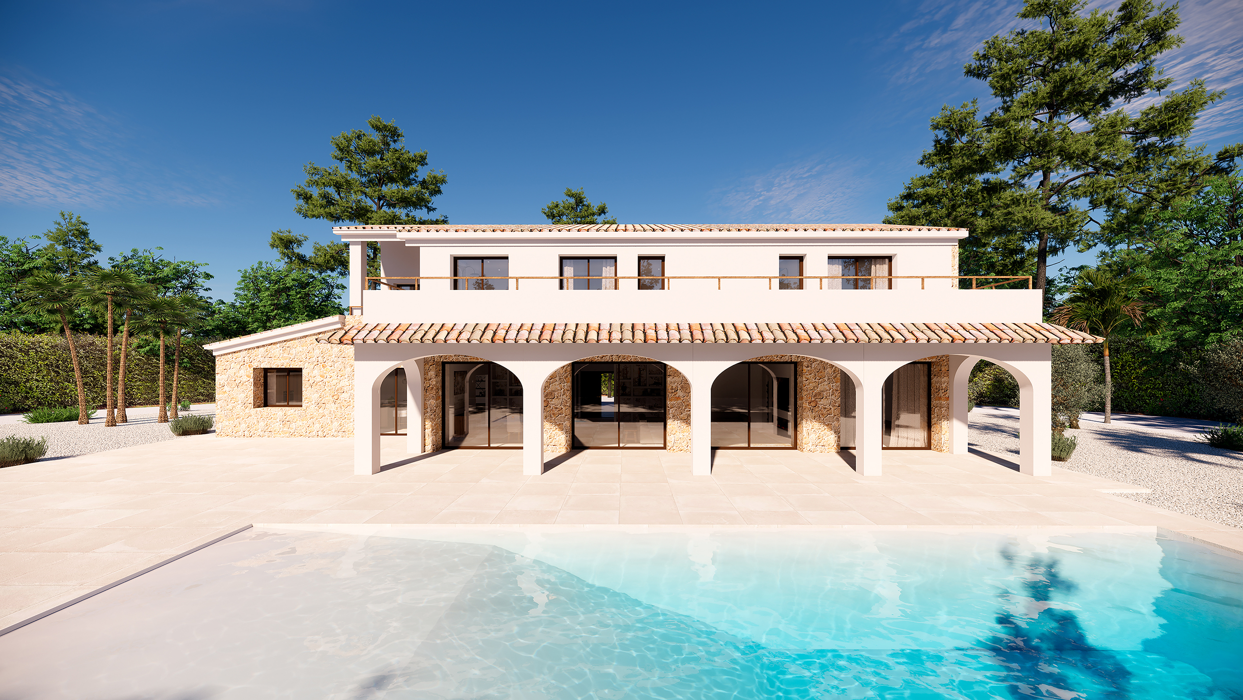 Het huis zal vier ruime slaapkamers hebben, elk met een eigen badkamer, inclusief elegante kleedkamers en hoogwaardige afwerkingen overal. Moderne voorzieningen zoals airconditioning, pre-installatie voor klimaatregeling, een bijkeuken en hoogwaardige materialen worden gecombineerd met traditionele mediterrane elementen om een warme en uitnodigende sfeer te creëren.