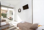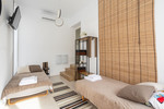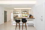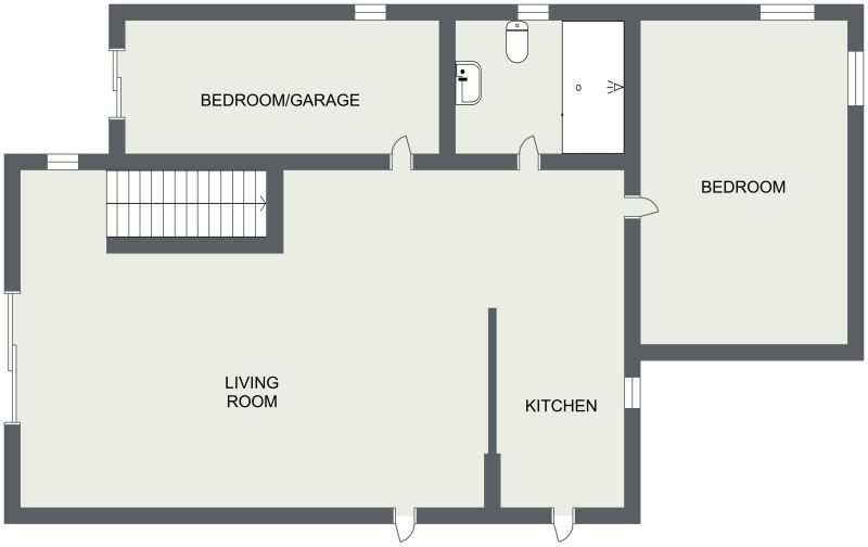 De woonkamer en keuken vormen een open ruimte en er is voldoende ruimte voor een zithoek met bank en tv-meubel, evenals een eethoek voor vier tot zes personen.