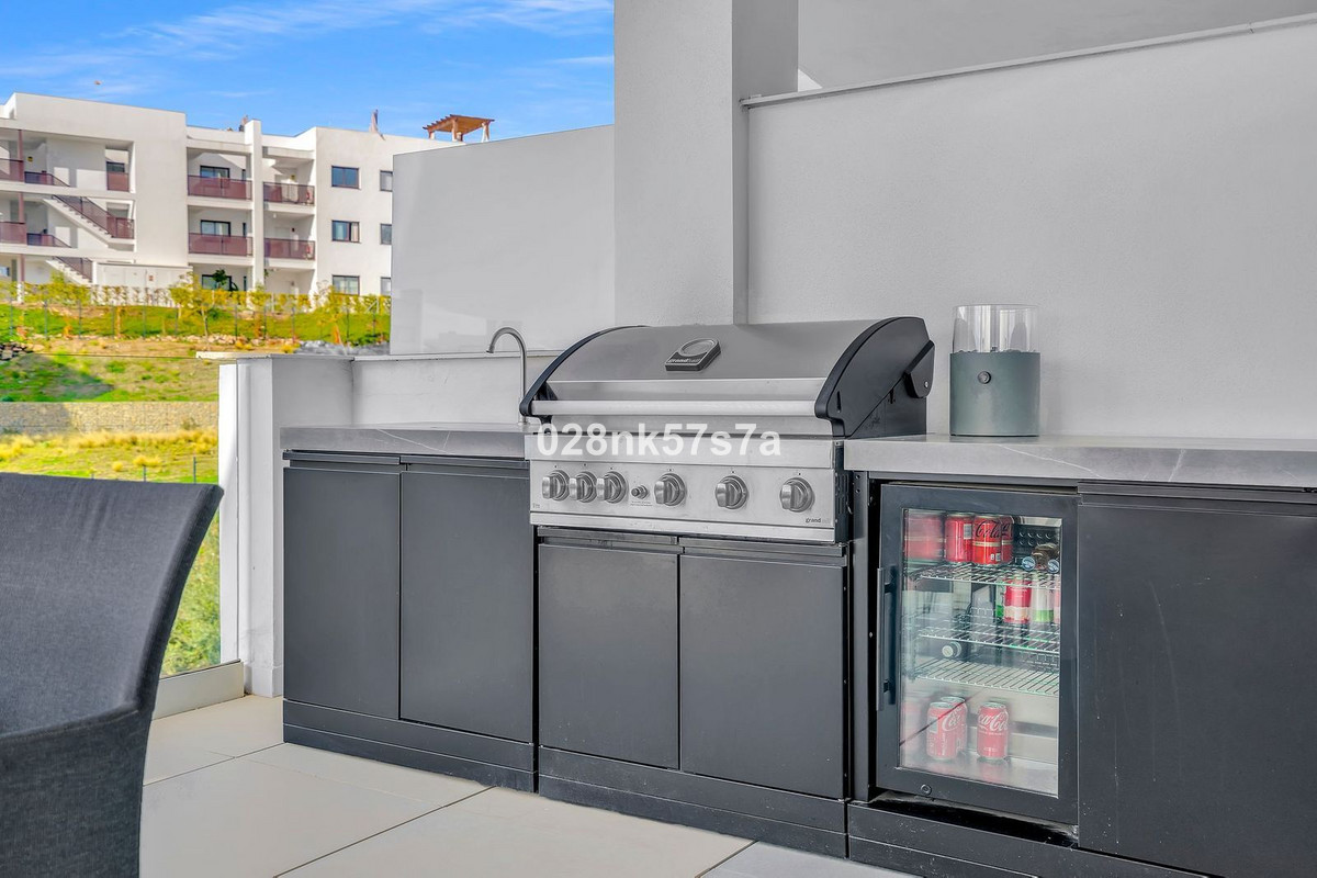 Higueron West is a modern and exclusive gated residential area between Fuengirola and Benalmadena. The area is known for its high quality architecture, green surroundings and the wide spectre of facilities. Reserva del Higueron has a very attractive location with a short distance to the beach, various amenities and public transportation. This area is at the same time quiet and private. From the apartment there is only a few minutes walk the the Higueron Resort, that offers a luxury hotell, spa, gym, restaurants and a high quality sports center. You are also in walking distance to the beach, beach promenade and train station Carvajal for the train going either to Fuengirola, Malaga or Malaga Airport. The combination of a modern environment, facilities and accessability ,makes Higueron West one of the most desirable areas in this part of Costa del Sol. This is both for holidays and permanent living. This apartment in Higueron West is extra well maintained, with a high upgraded standard, good sun conditions and panoramic sea views. So far this has been a holiday home and not used a lot. The terraces are south-west facing with sun more or less all day and till the sunset. The main terrace is covered, something that gives you shade on the hottest days but also protection from a rainy day in the winter. This terrace has a lovely outdoor kitchen with a barbecue, sink with water and a fridge. This property keeps a high standard through out, with a lot of upgrades. There is underfloor heating in all rooms that can be controlled from each room. The kitchen has an american fridge, wine fridge, all appliances integrated with an extra water filter so you can drink the water from the tap. For this apartment there are 2 extra spacious underground parking places with a huge storage, with almost room for your butler ;-) The apartment is more or less fully furnished, apart form some single pieces and personal items. Book a viewing now, keys are in the office.