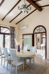 You will not have a sense of being cramped in this place. Inside and out you have a lot of space everywhere. The plot is a so-called double plot. The orientation of the house is towards the south and the swimming pool area gets sun all day. The pool is lit, so it's amazing even at dusk, and there's also a separate shower. The building is in very good condition, as a large amount of money has been spent on renovations and upgrades. There is a wonderful, well-maintained garden with an automatic irrigation system.